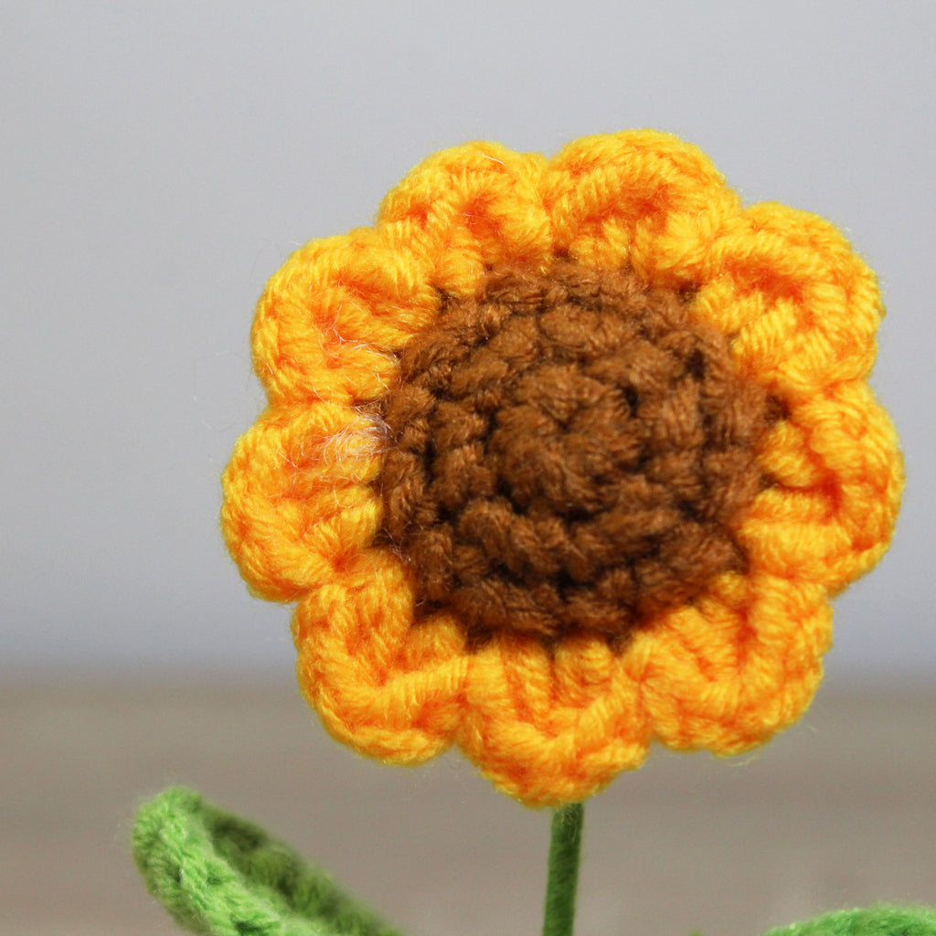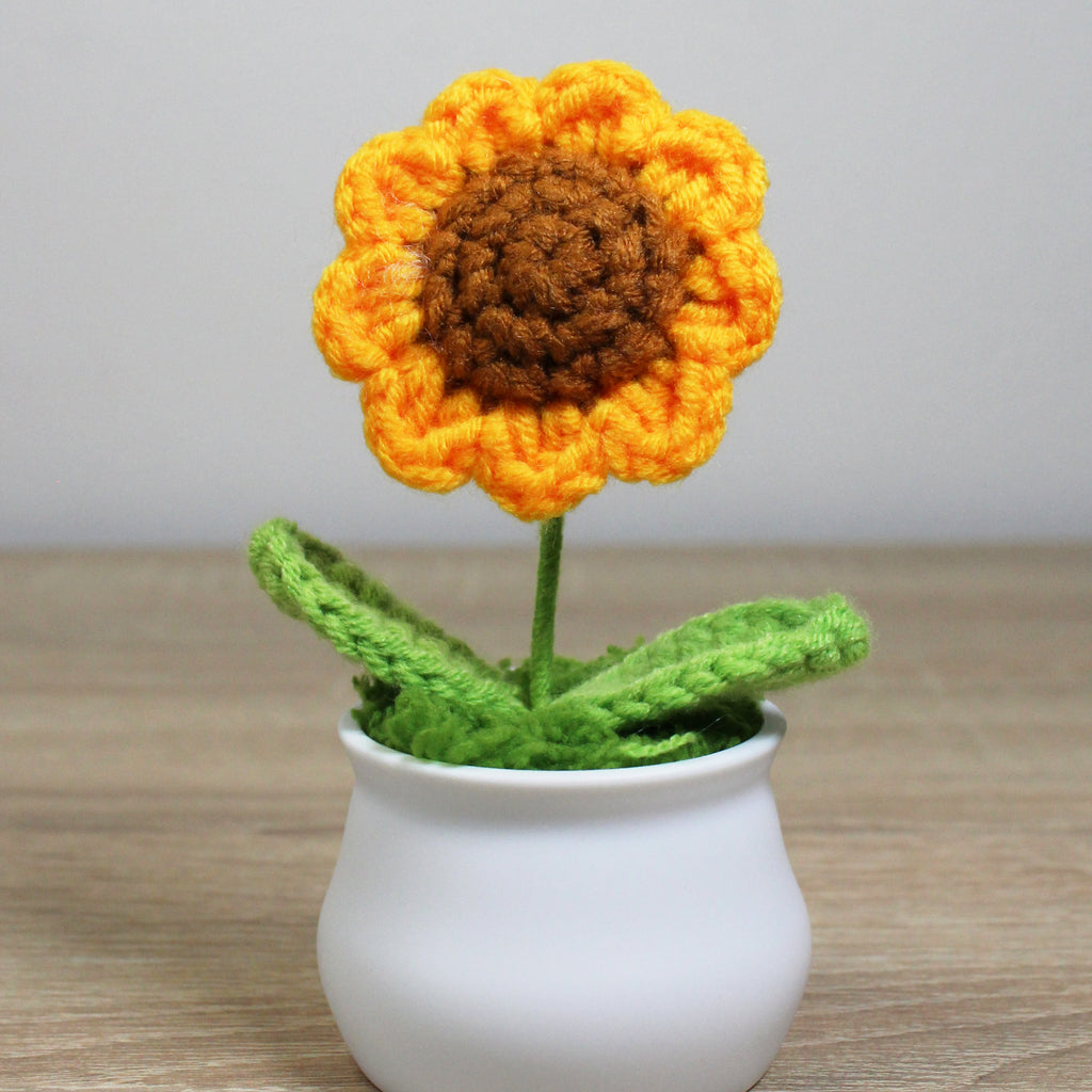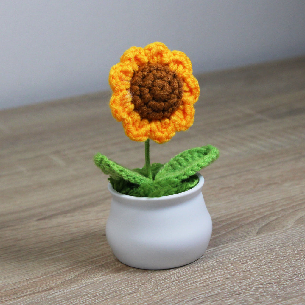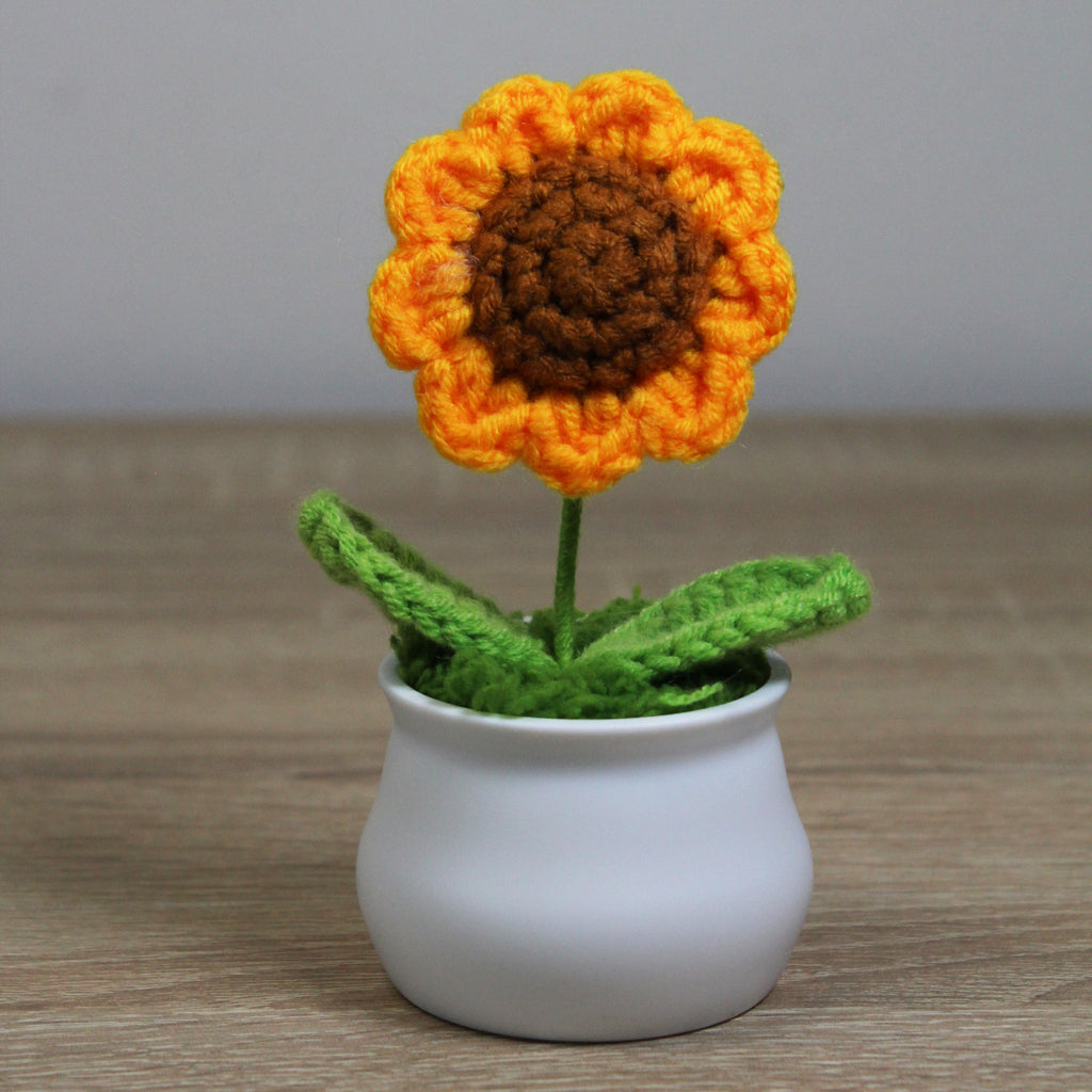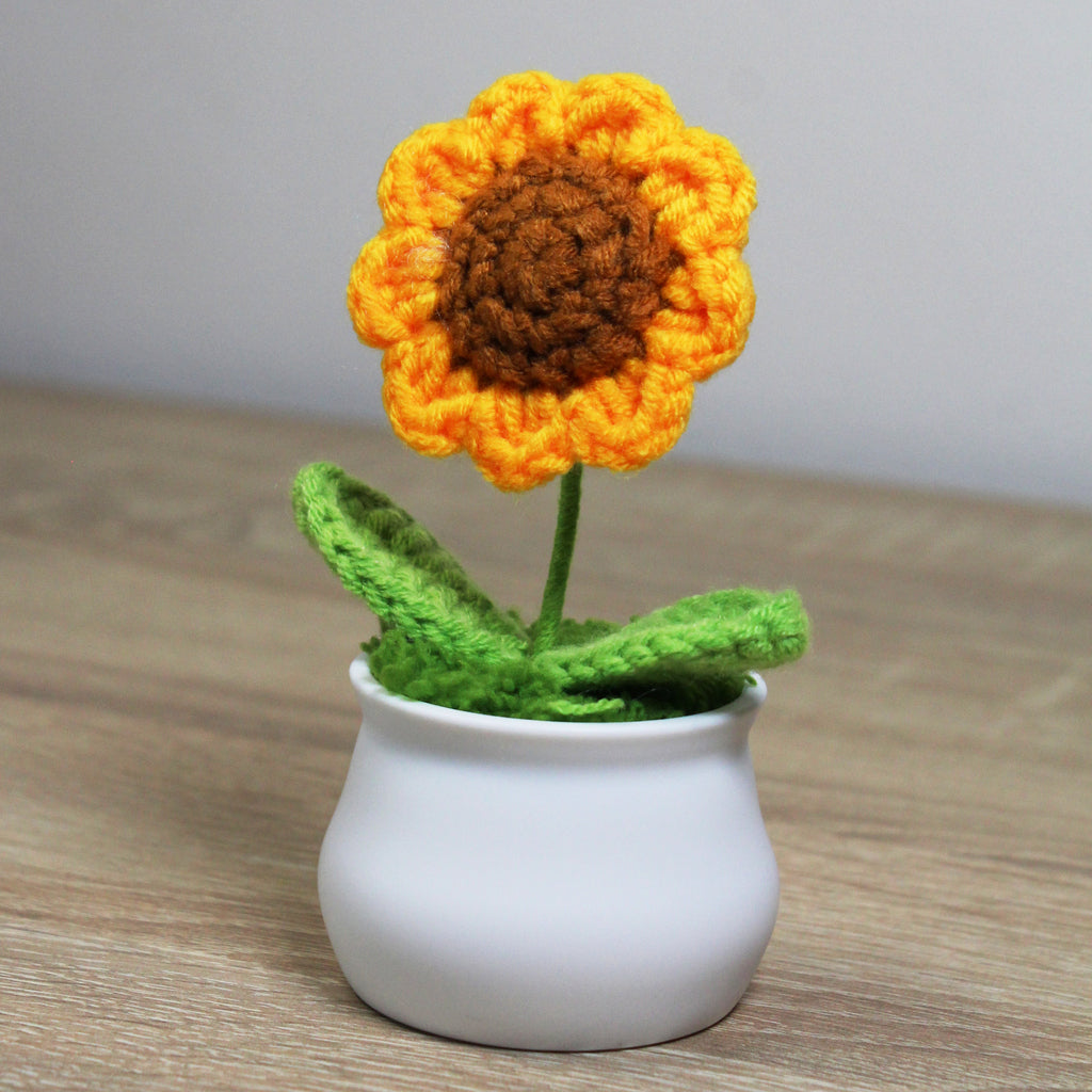 Háčkovaná slunečnice v květináčku