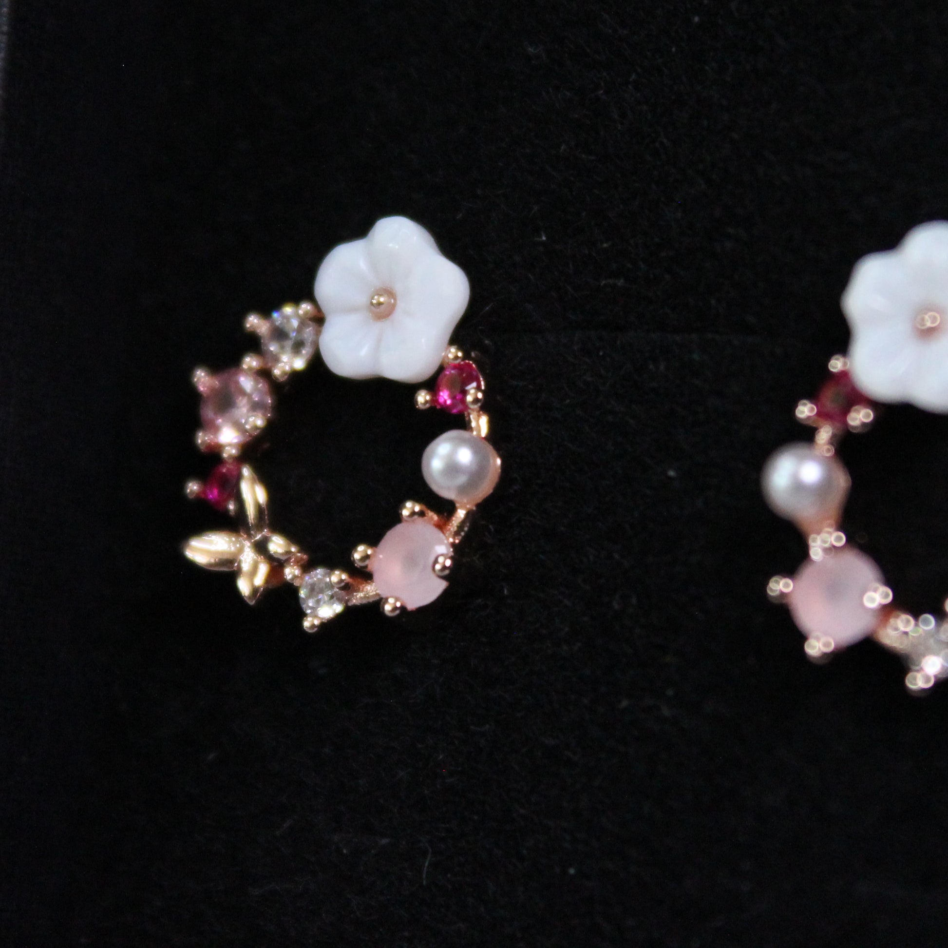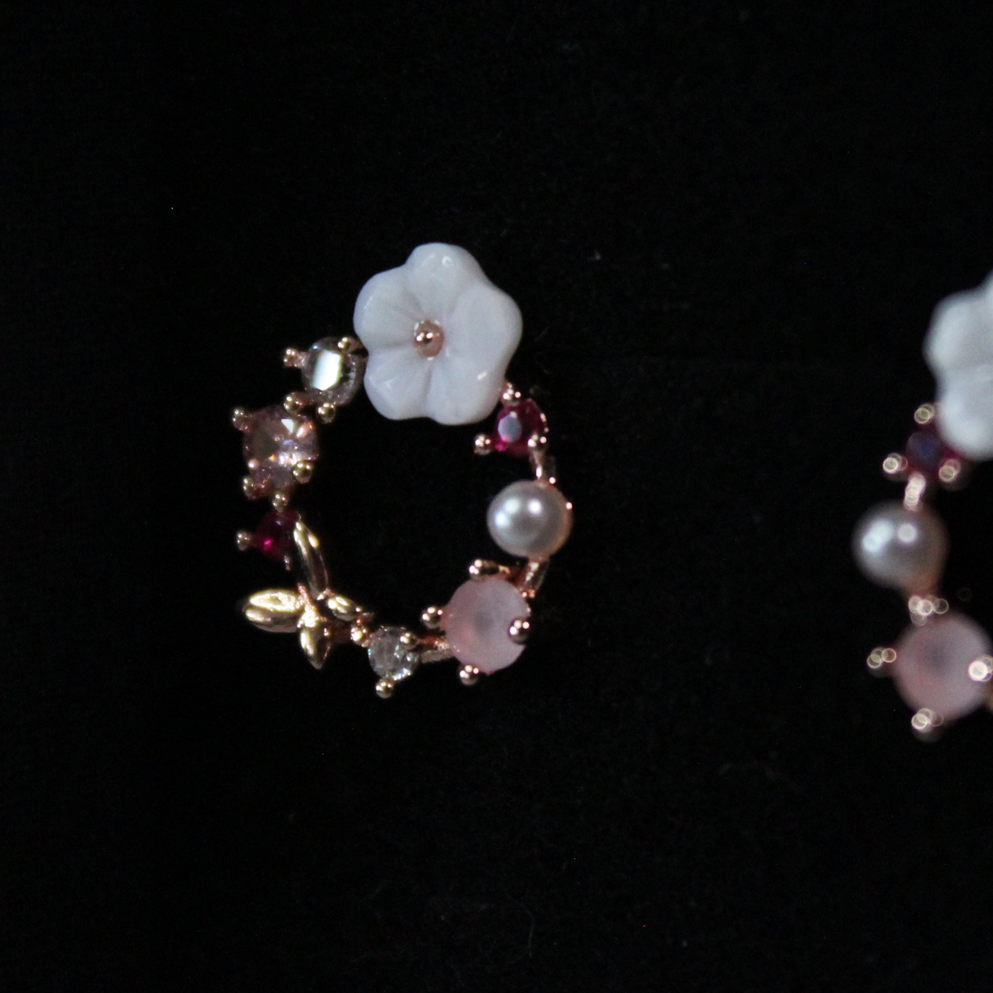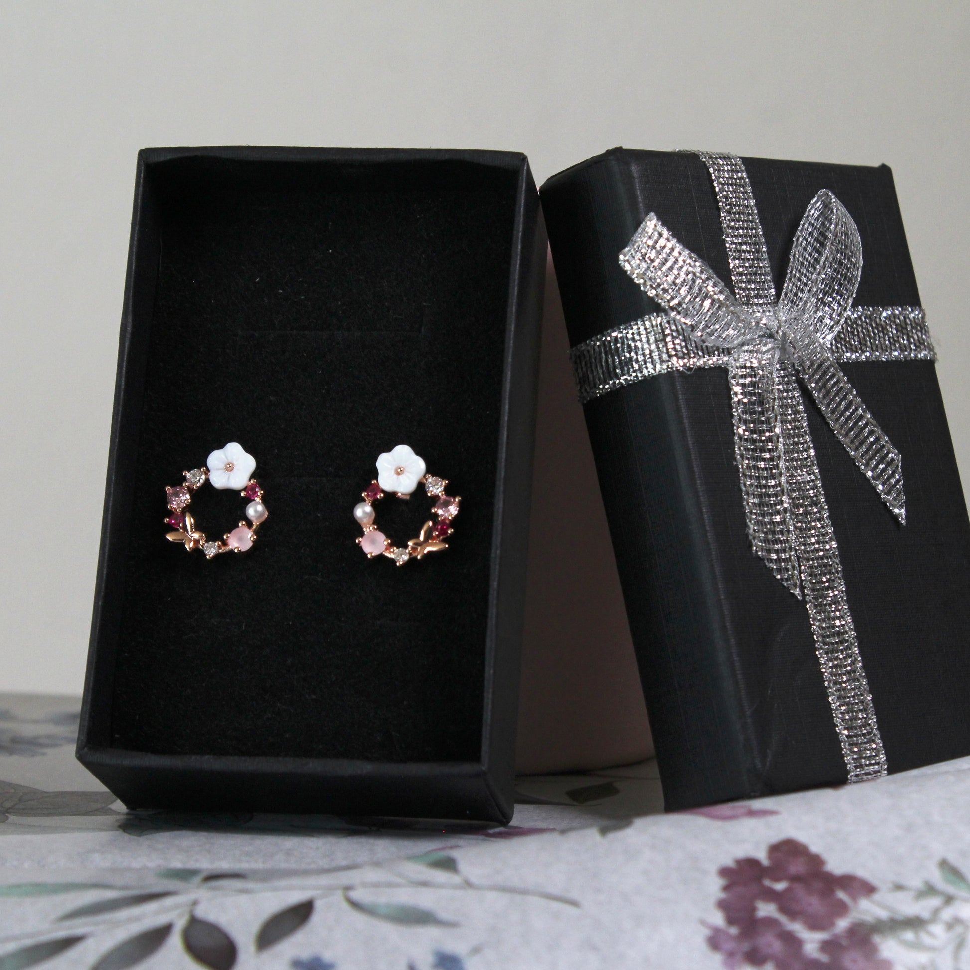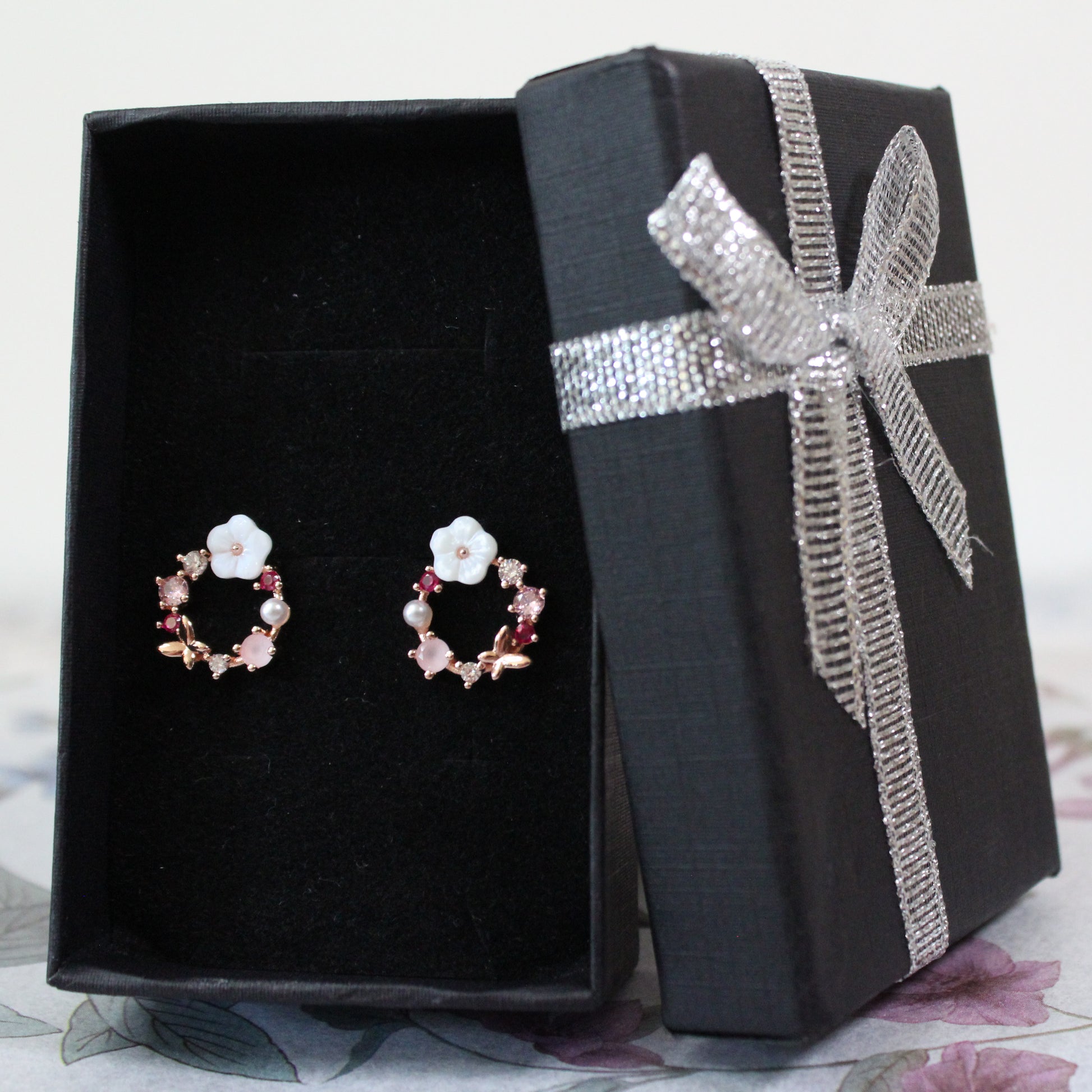Hypoalergenní kruhové náušnice připomínající květinový věnec. Tyto nevšední naušnice potěší jako dárek pro každou příležitost. Samozřejmostí je dárkové balení včetně elegantní černé krabičky s mašlí.
