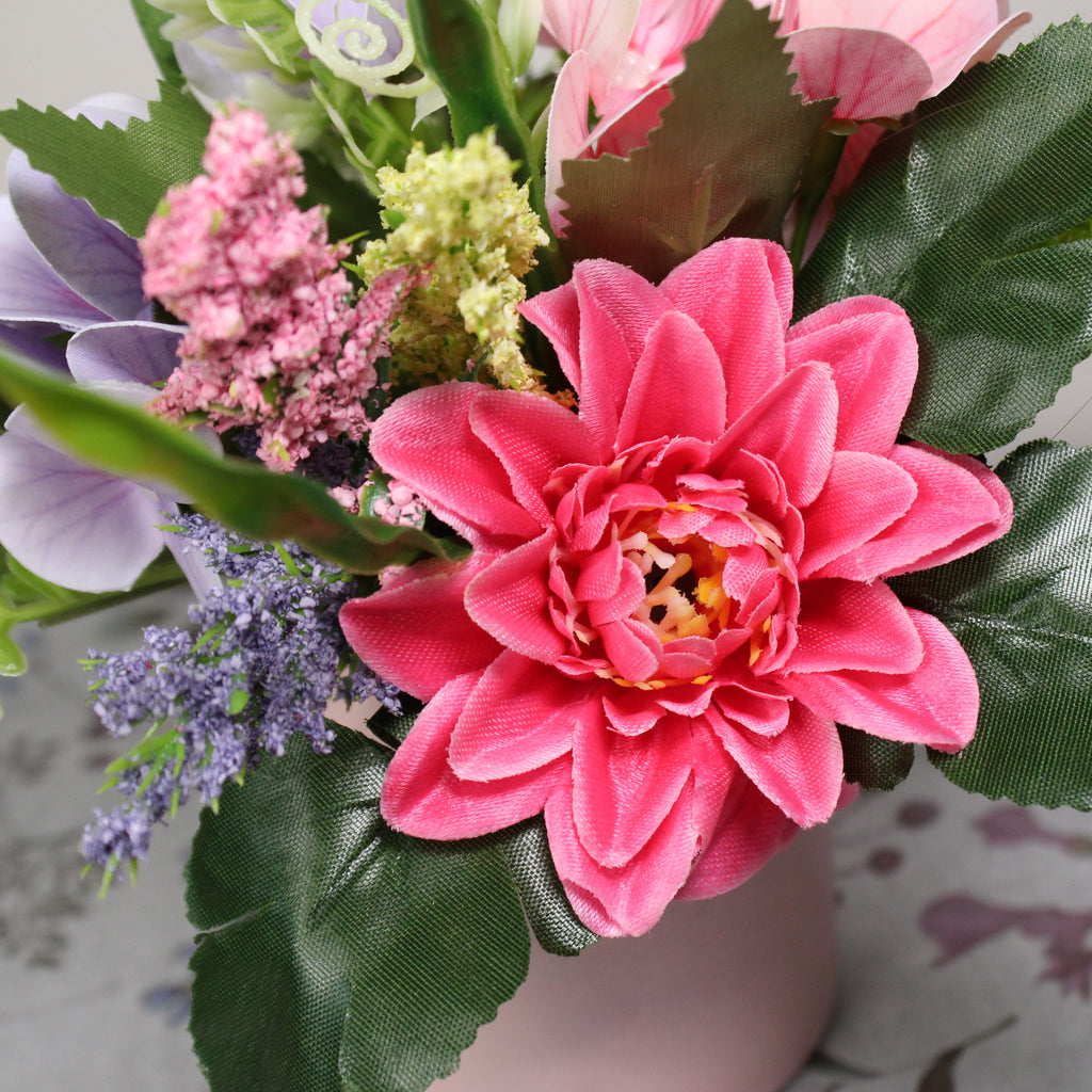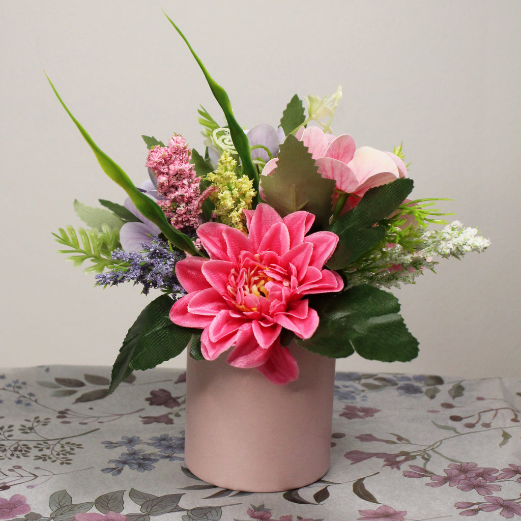 Růžový flower box plný umělých květin v pastelových tónech. Tento roztomilý boxík najde více uplatnění. Potěší jako pozornost, nebo jako součást dárku. Díky svému líbivému vzhledu rozzáří každý interiér a jeho malá velikost mu umožní najít své místo kdekoliv. Zároveň při objednání více kusů poslouží jako nevšední, vkusná výzdoba oslav nebo třeba svatby.