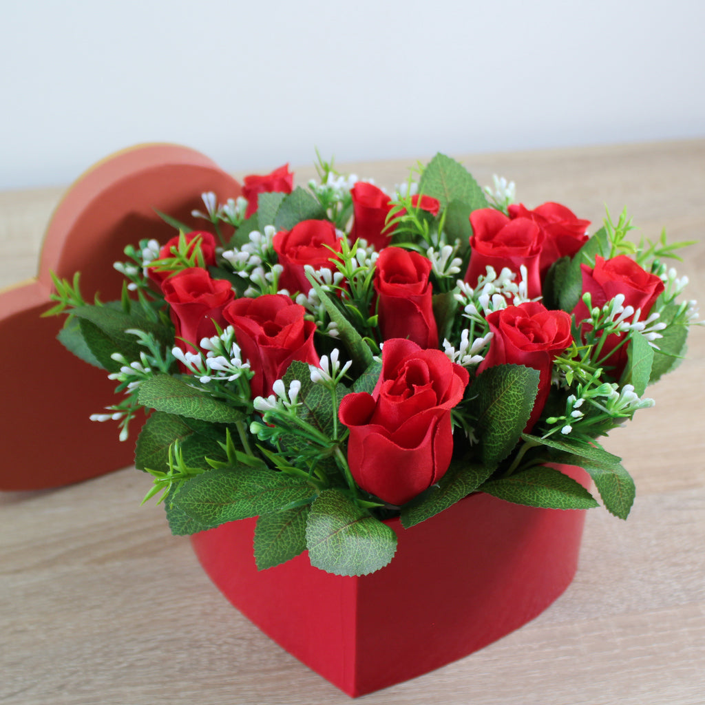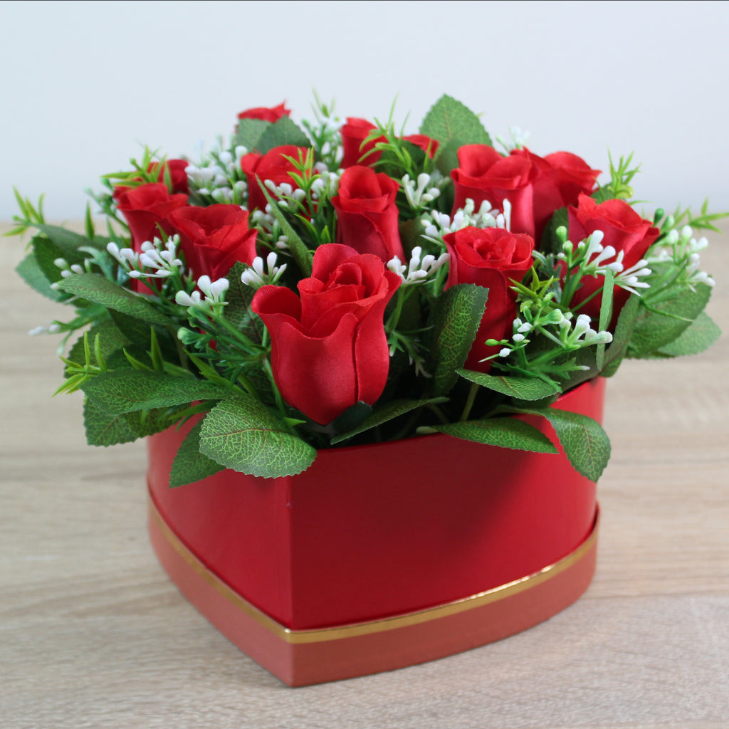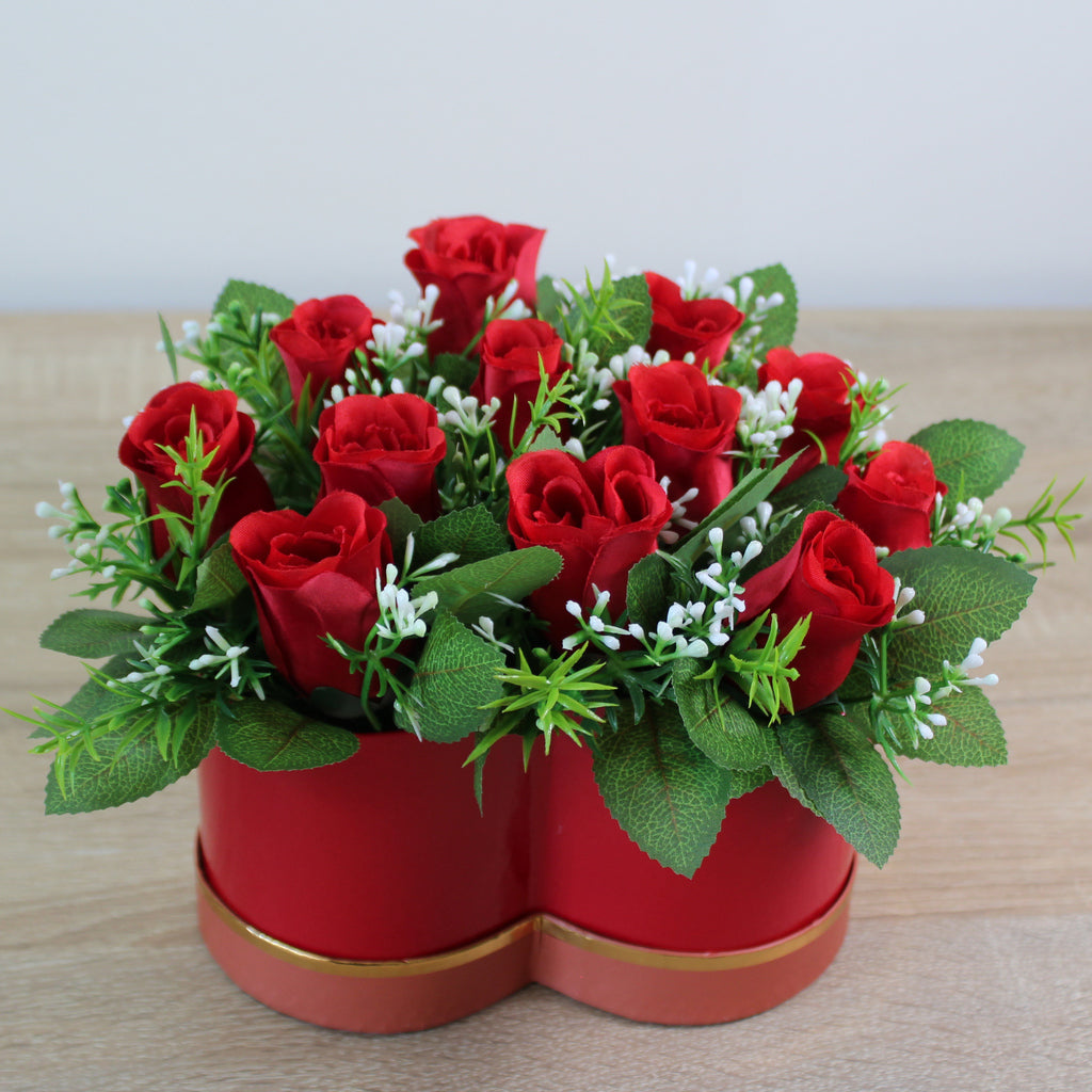 Floristické aranžmá z umělých růží v luxusním boxu s víkem. Ideální dárek pro ty, kteří chtějí mít stále čerstvé rostliny o které se nemusí starat a přitom vypadají jako živé. Skvěle doplní váš interiér ať už v předsíni, na komodě, jídelním stole, nebo třeba na verandě, styling už je jen na vás.