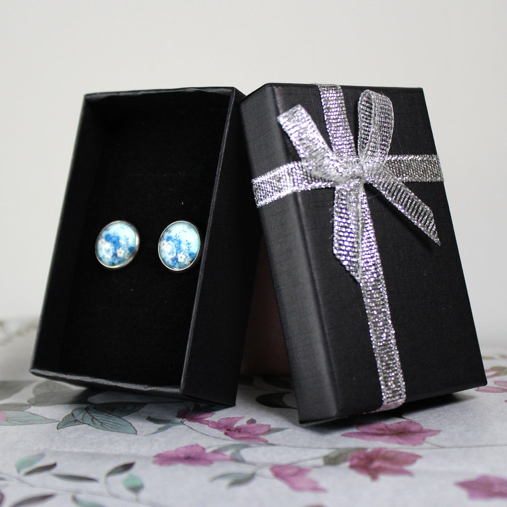 Hypoalergenní knoflíkové naušnice s květinovým vzorem. Tyto nevšední naušnice, na první pohled zaujmou a potěší jako dárek pro každou příležitost. Samozřejmostí je dárkové balení včetně elegantní černé krabičky s mašlí.