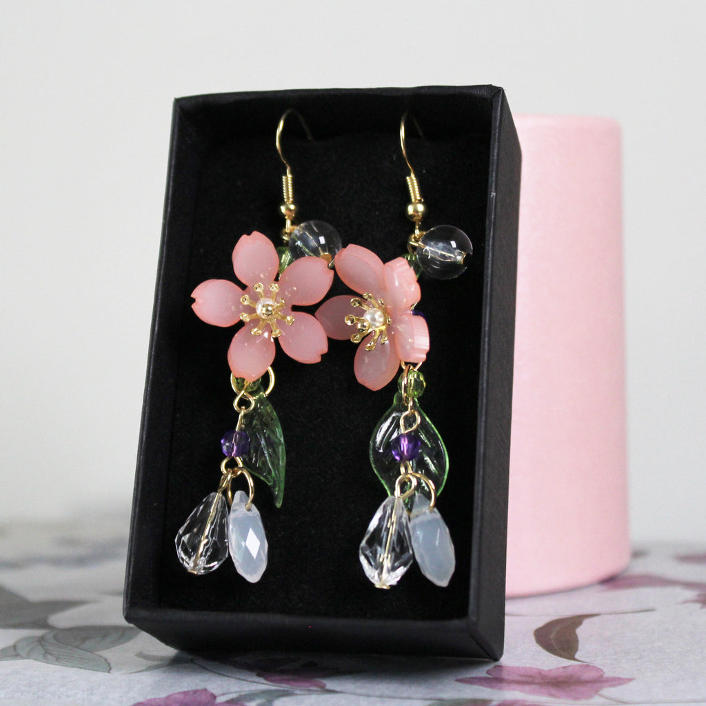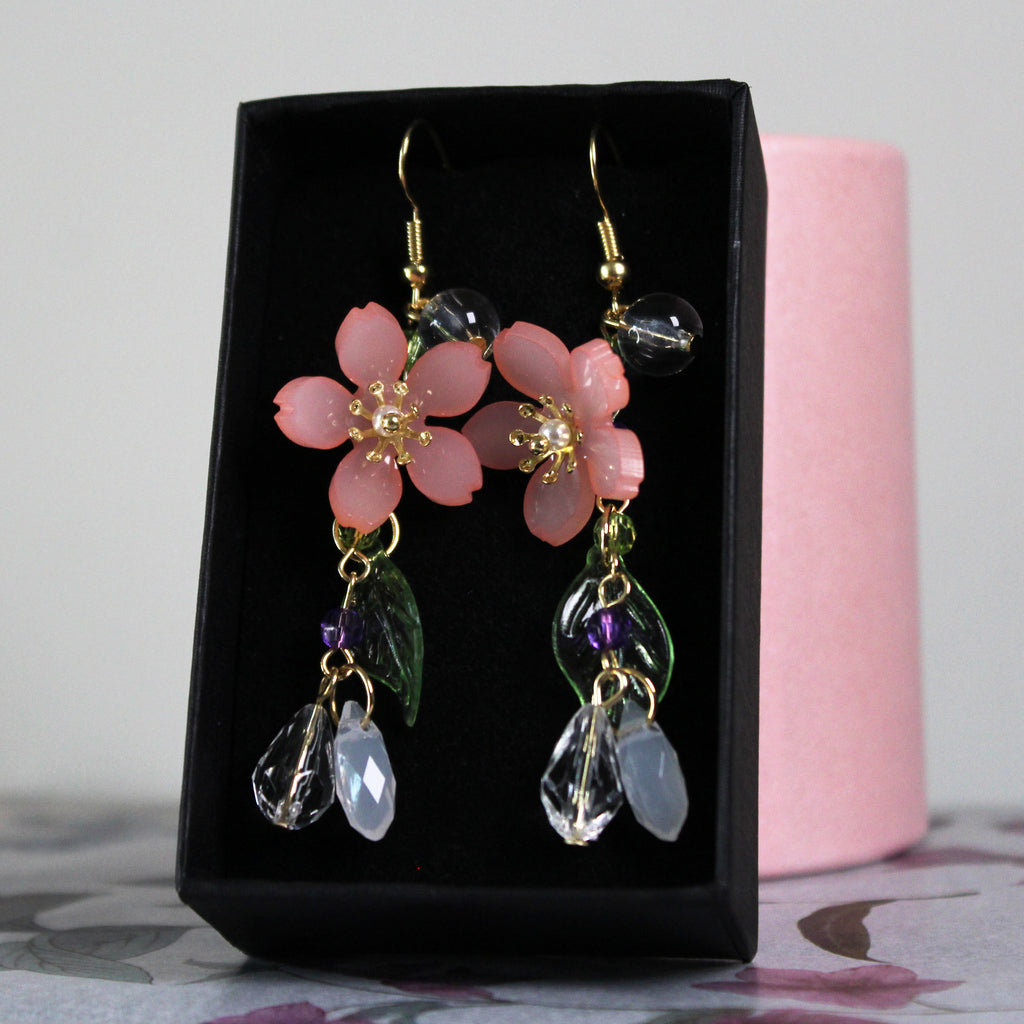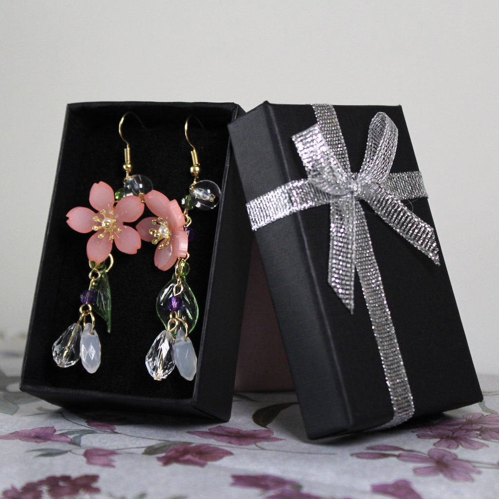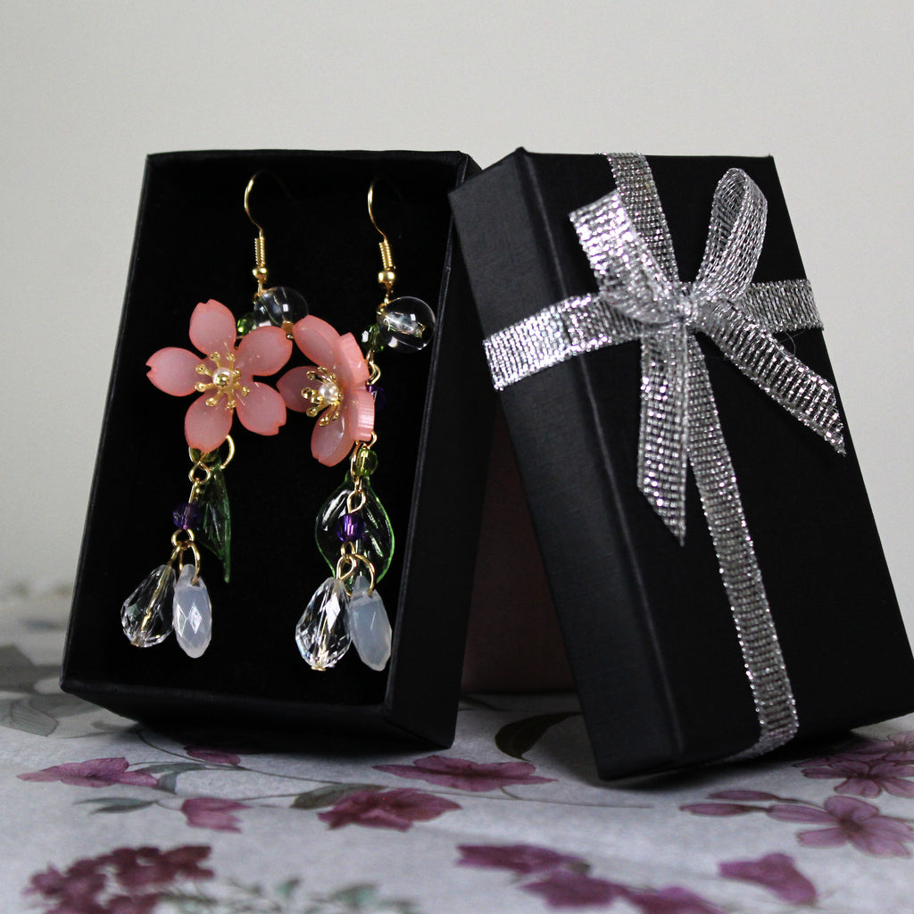 Asymetrické dlouhé náušnice připomínající květy třešní. Tyto nevšední naušnice potěší jako dárek pro každou příležitost. Skvěle doplní váš outfit na dovolené, nebo párty. Samozřejmostí je dárkové balení včetně elegantní černé krabičky s mašlí.