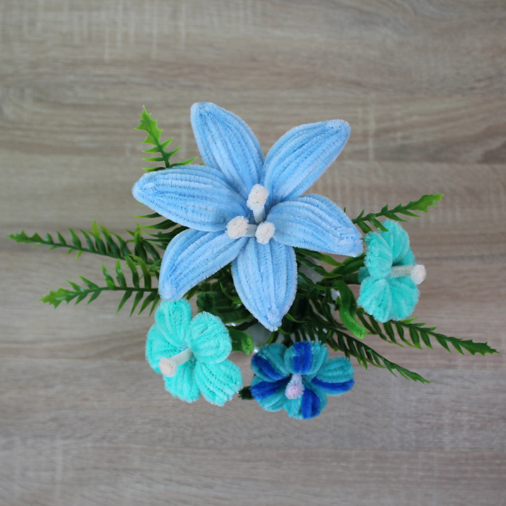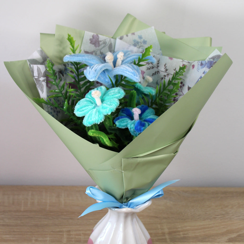 Handmade kytice z žinylkových drátků, která rozzáří váš domov a udělá radost všem, co milují květiny, nebo ocení ruční práci. Chcete darovat květinu, ale bojíte se že nevydrží bez vody, dlouhý převoz autem, horko a nebo naopak mráz? Tak s touhle kyticí se bát nemusíte.