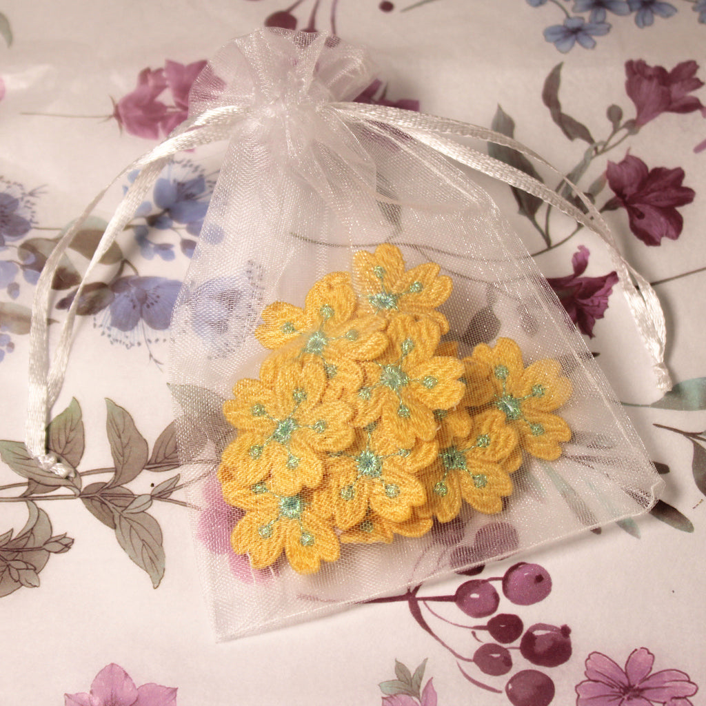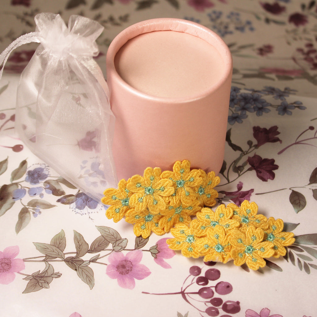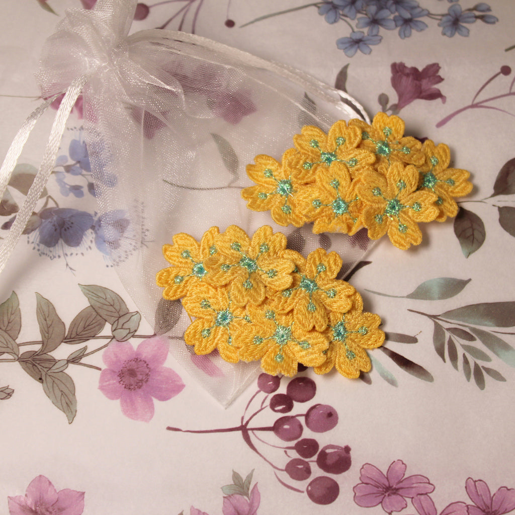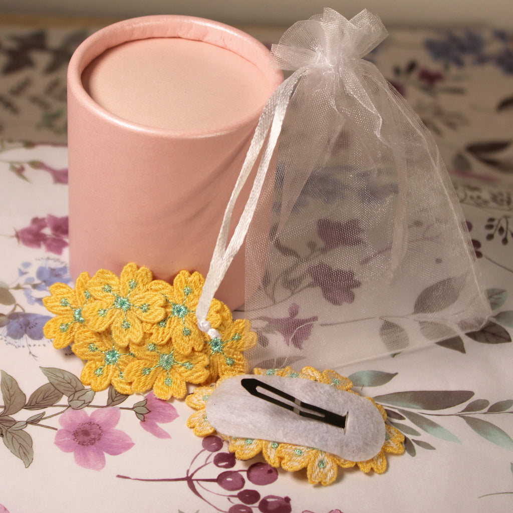 Vyšívaná, látková spona s motivem květin je roztomilým doplňkem letního outfitu, nebo jako doplněk účesu pro nevšední události. Spona je lehká, nezatěžuje vlasy a snadno se aplikuje. Součástí dárkového balení jsou dva kusy a organzový sáček.